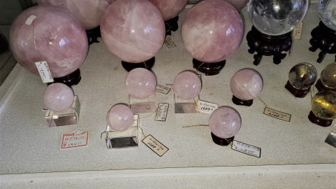 3、アメジスト丸玉(前列6個・約3.3㎝から4.3㎝)